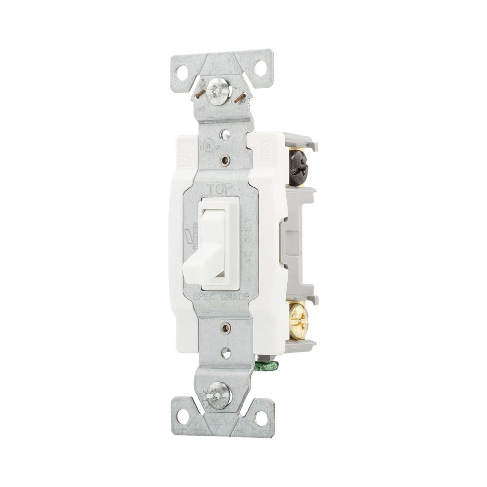 Short Description | 15 A, 120/277 VAC, Grounding Toggle Switch, White |