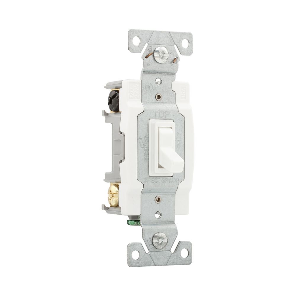 Product Details | Grounding Toggle Switch, 1 Pole, 4 Ways, 15 A, 120/277 V Ac, Polycarbonate (Body); Nylon (Toggle) Material, Silver Alloy Contact Material, White, Screw Connection, Toggle Actuator, Screw, 1.31 (W) x 1.05 (D) in, -20 °C to +60 °C Operating Temperature |