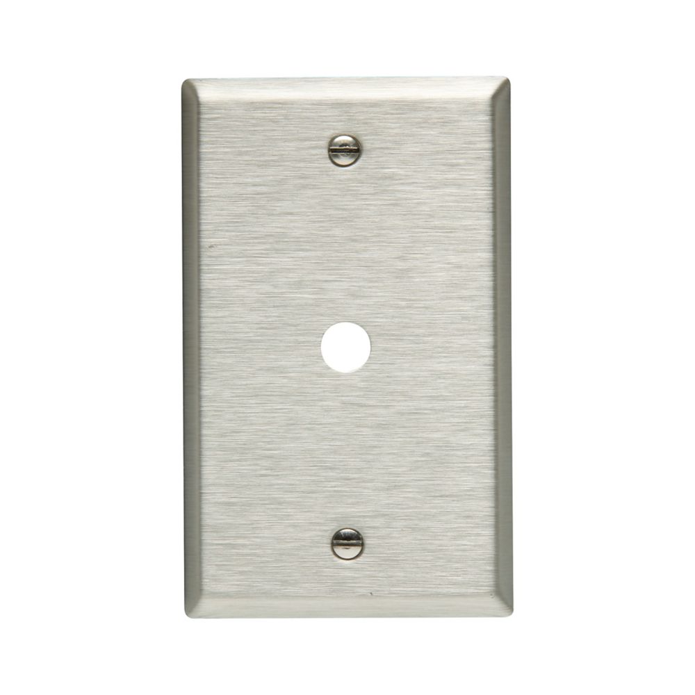 Long Description | Eaton Telephone and coaxial wallplate, Stainless steel, 0.375″ Hole Cutout, Stainless steel, Single-gang, Standard, ED Box |
