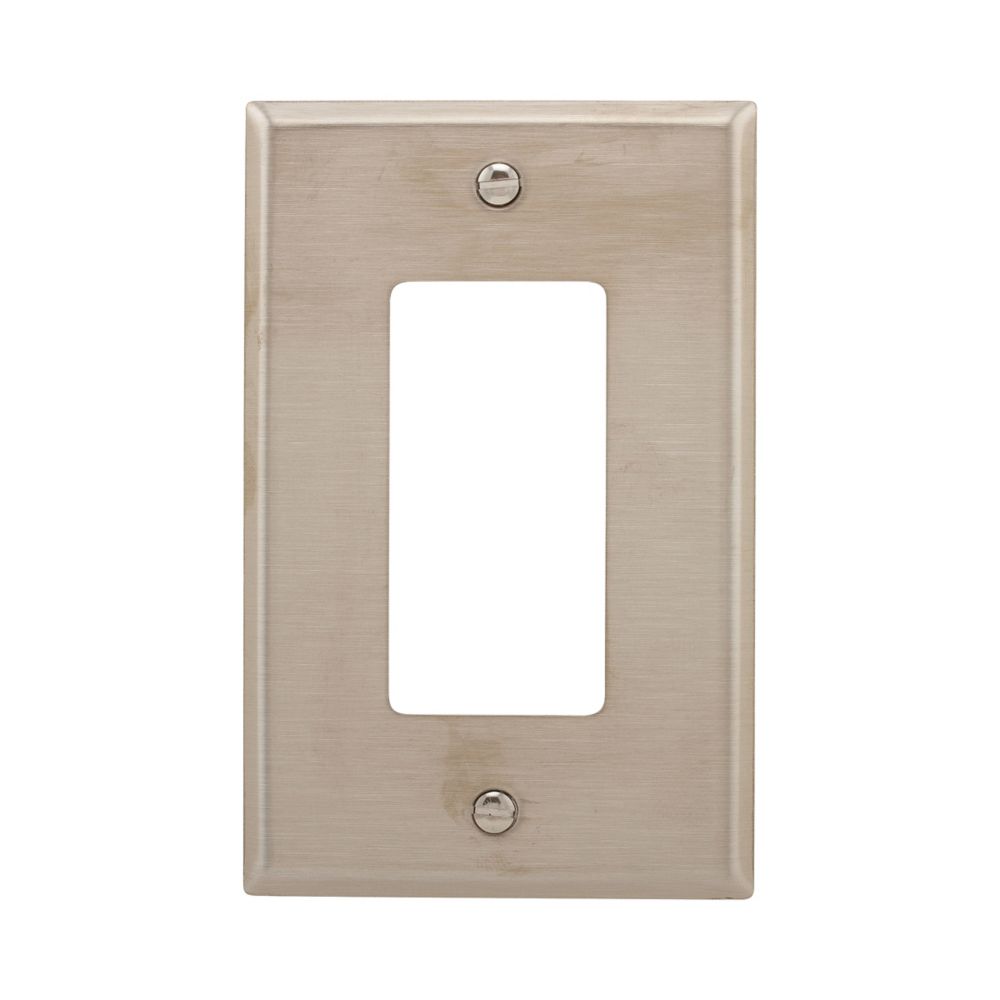 Long Description | Eaton Decorator / GFCI wallplate, Stainless steel, Decorator Cutout, Stainless steel, Single-gang, Mid-size, ED Box |