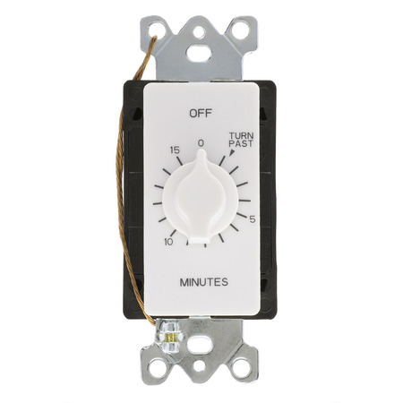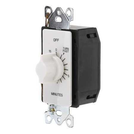 15-minute twist timer, no hold feature, color: white Variable timing with twist knob No neutral required, easy wiring Works in standard or decorator wall plates SPST “2 in 1” contacts |