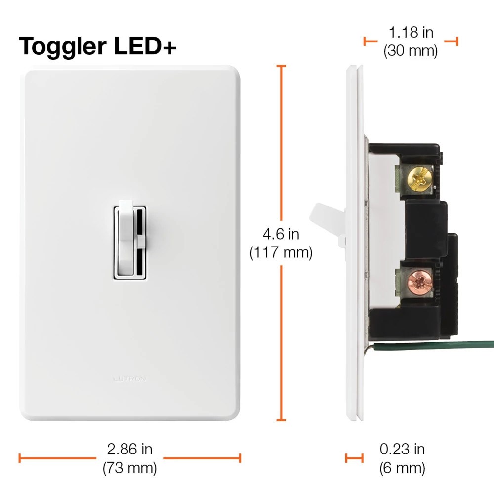 Special Features | Toggle to turn on/off; Slide to dim; Controls 150 W LED/CFL or 600 W Inc/Hal; Works with most brands |
