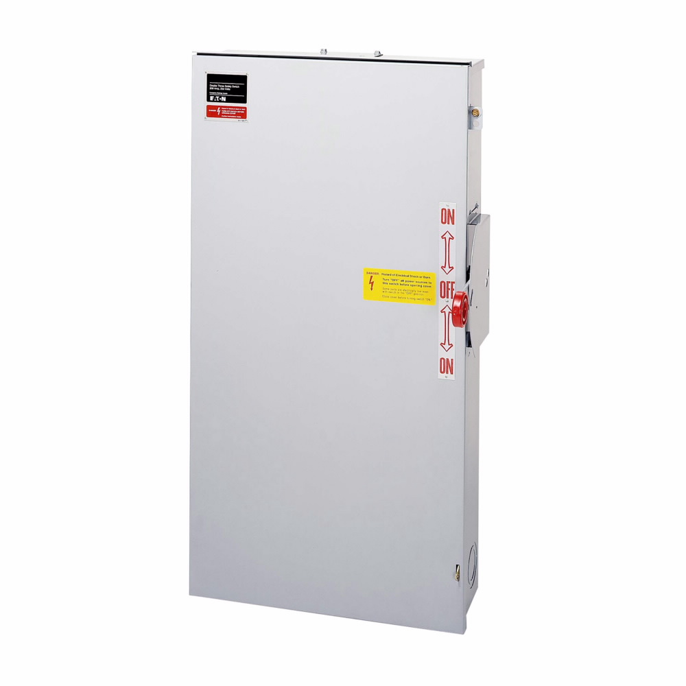 | Details | Safety Switch, 200 A, 240 V Ac;250 V DC, 2 Poles, 1 Phase, 3 Wires, 15 HP, Painted Galvanized Steel (Enclosure) Material, Non Fusible, 80 LB |