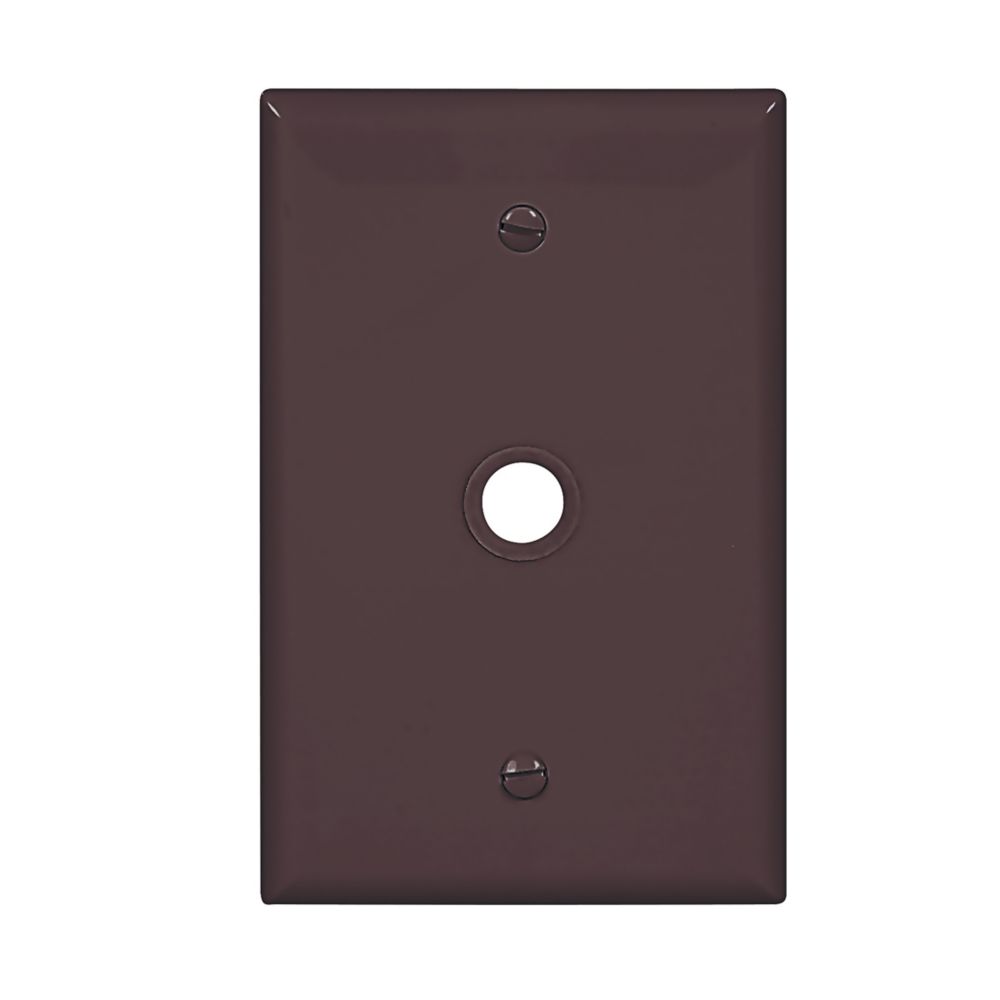 Long Description | Eaton Telephone and coaxial wallplate, Brown, 0.40″ Hole Cutout, Polycarbonate, Single-gang, Mid-size |