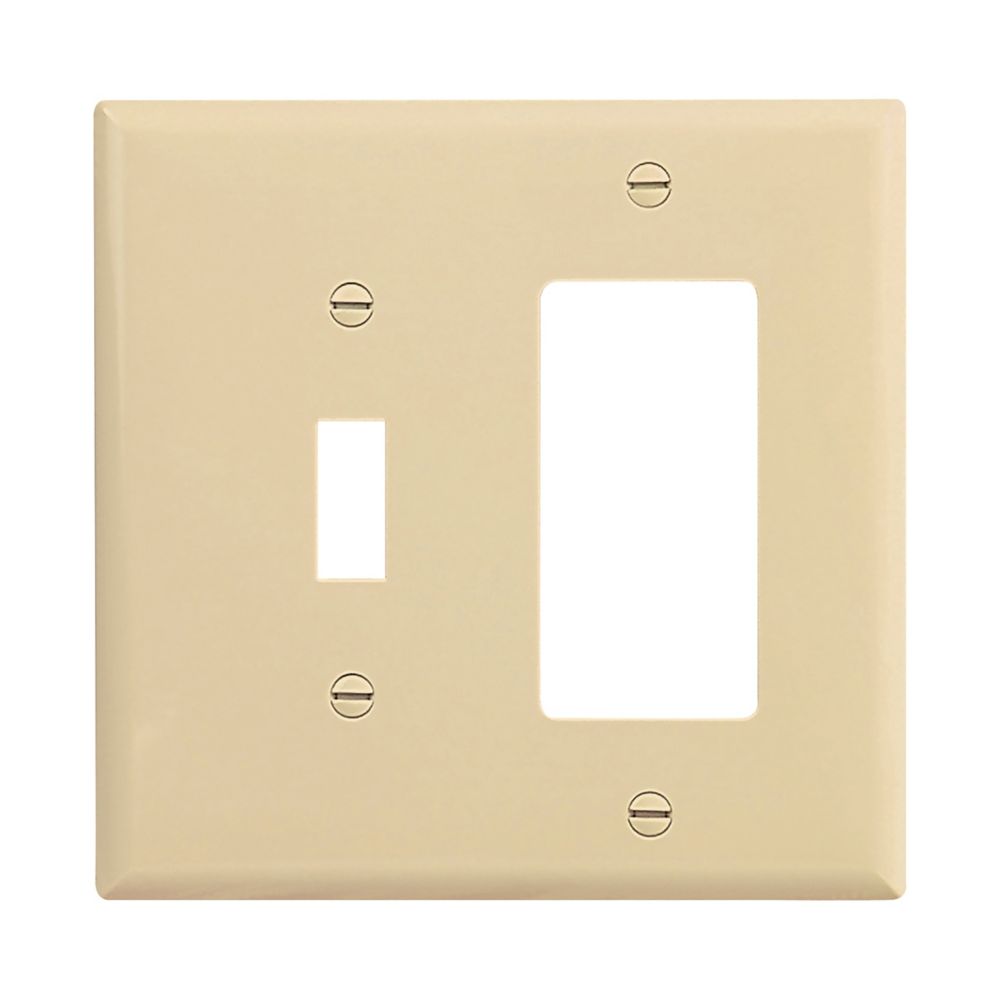 Short Description | 2 Gang, Screw Mount, Combination Wall Plate, Ivory, Toggle/Deco |