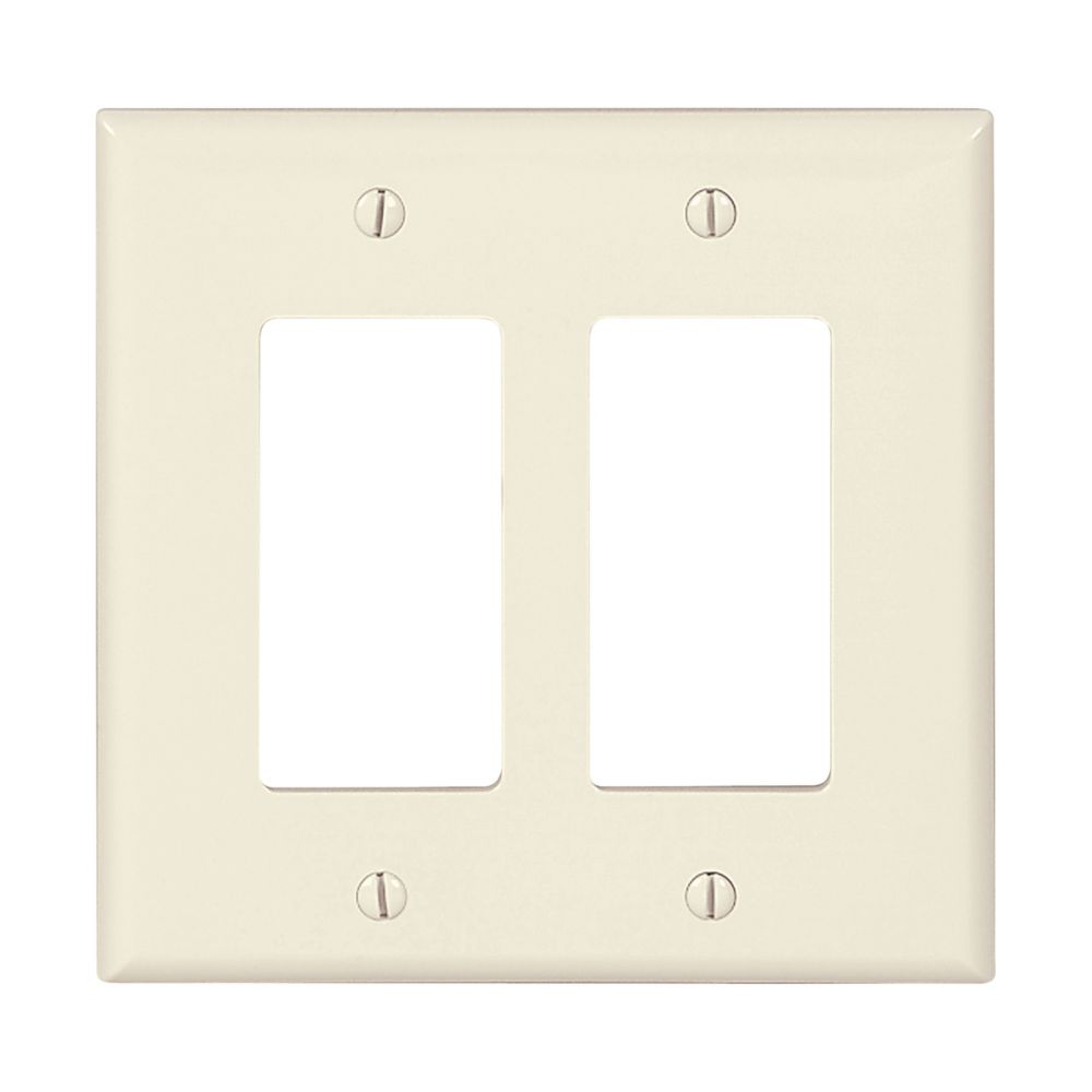 Long Description | Decorator Wall Plate, 2 Gang, 4.94 (W) x 4.87 (H) in, 0.080 in Thickness, Screw Mount, Polycarbonate Material, Light Almond, Gloss, 0.0900 lb |
