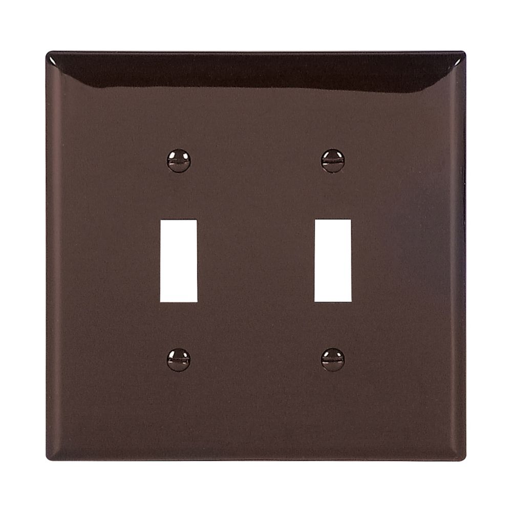 Short Description | 2 Gang, Screw Mount, Toggle Switch Wall Plate, Brown | |