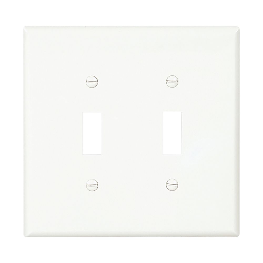 Short Description 2 Gang, Screw Mount, Toggle Switch Wall Plate, White