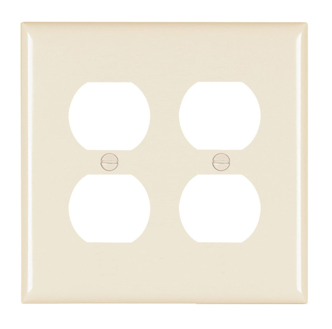 Long Description | Wall Plate, 2 Gang, 4.75 (W) x 4.6875 (H) in, 0.070 in Thickness, Nylon Material, Light Almond, 0.0800 lb |