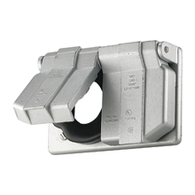 Features Deluxe Weatherproof Covers for FS/FD Boxes. UL listed for wet and damp locations. Diecast aluminum with epoxy finish. Self-closing spring door. EPDM gasketing (-50°F to 260°F).