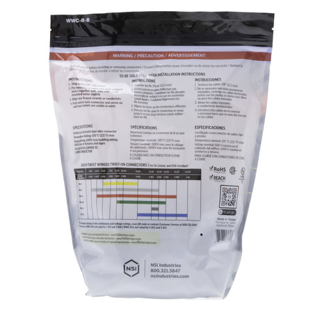 Special Features – Fixed, precise square wire spring for secure grip on conductors – Winged design for easy twisting – Corrosion protection (WW Corrosion Protection)